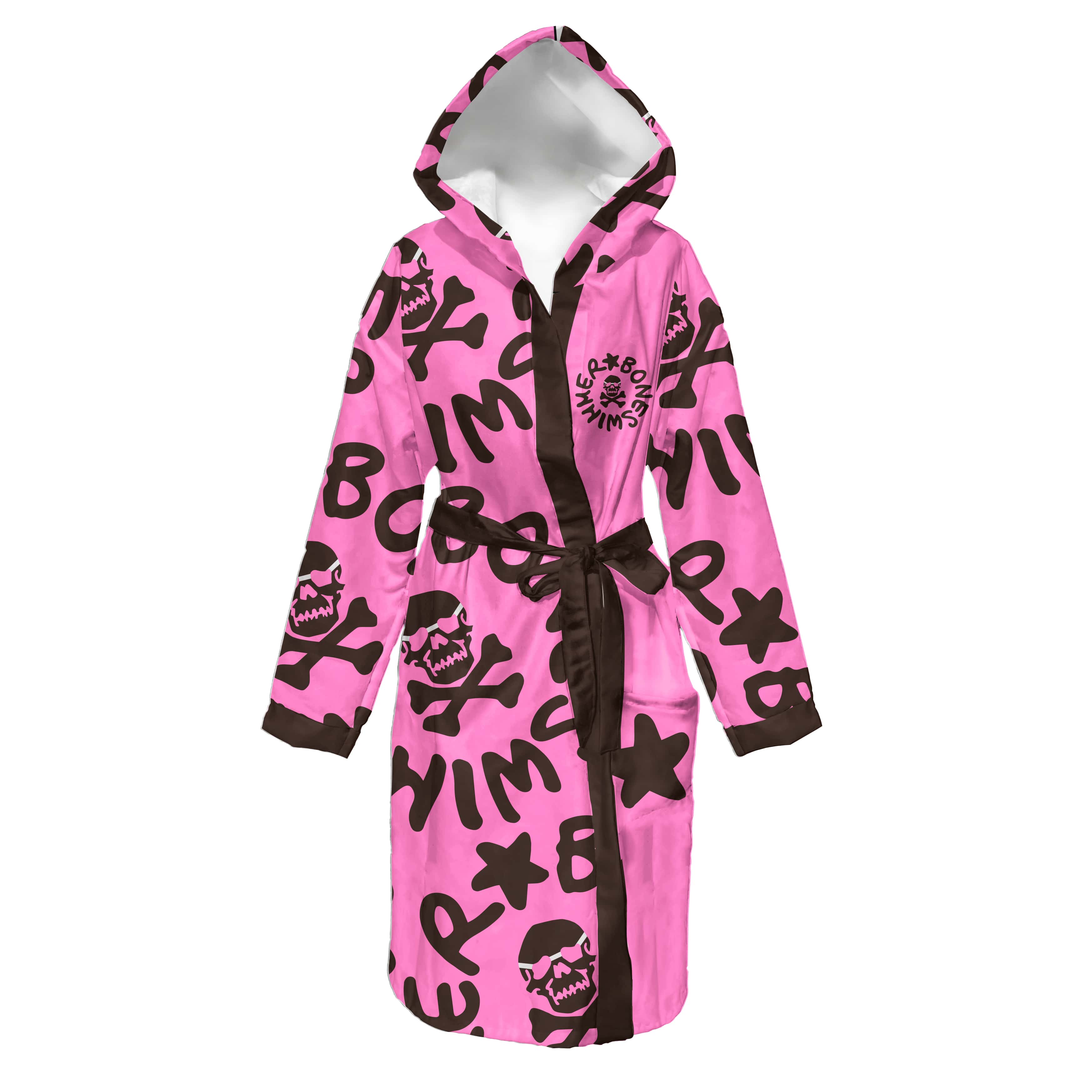 Peignoir pour enfant BONESWIMMER dans une élégante teinte rose avec notre logo iconique couleur chocolat. Confectionné en Italie, ce vêtement Couture Athlétique est conçu pour les petits sportifs qui ne renoncent pas au style.