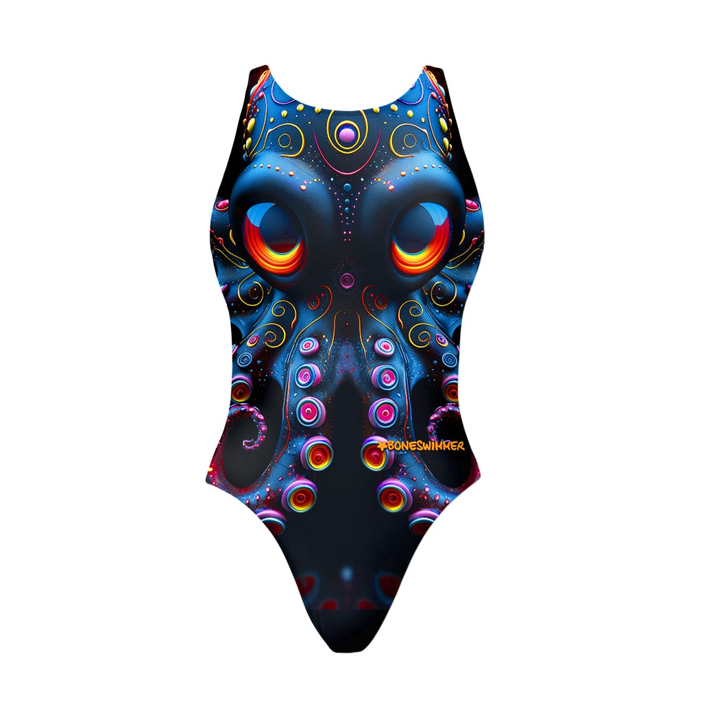 maillot une pièce ouvert sur les hanches, réalisé à 100 % en polyester PBT, doublé à l’avant ; dédié aux athlètes qui s’entraînent intensivement plusieurs fois par semaine, voire tous les jours, et parfait aussi en compétition.