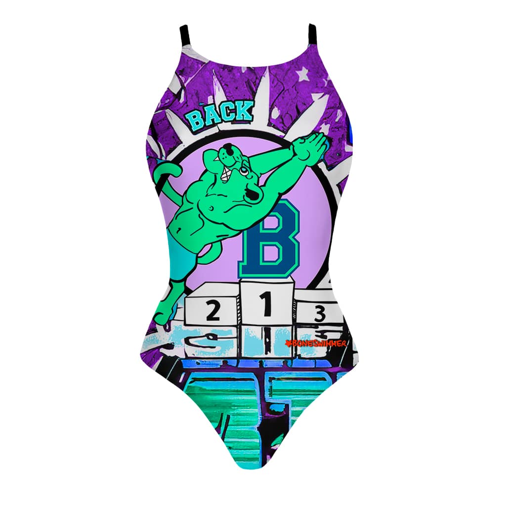 Style : destiné à celles qui nagent sur le dos (back), il allie style urbain et énergie, idéal pour celles qui recherchent un maillot de piscine alliant fonctionnalité et caractère. Le graphisme pop, avec une panthère qui plonge sur le dos, transmet énergie, détermination et esprit de compétition, le rendant parfait pour l’entraînement en piscine. Un dessin audacieux qui exprime une personnalité forte, assurée et prête à se démarquer dans et hors de l’eau.