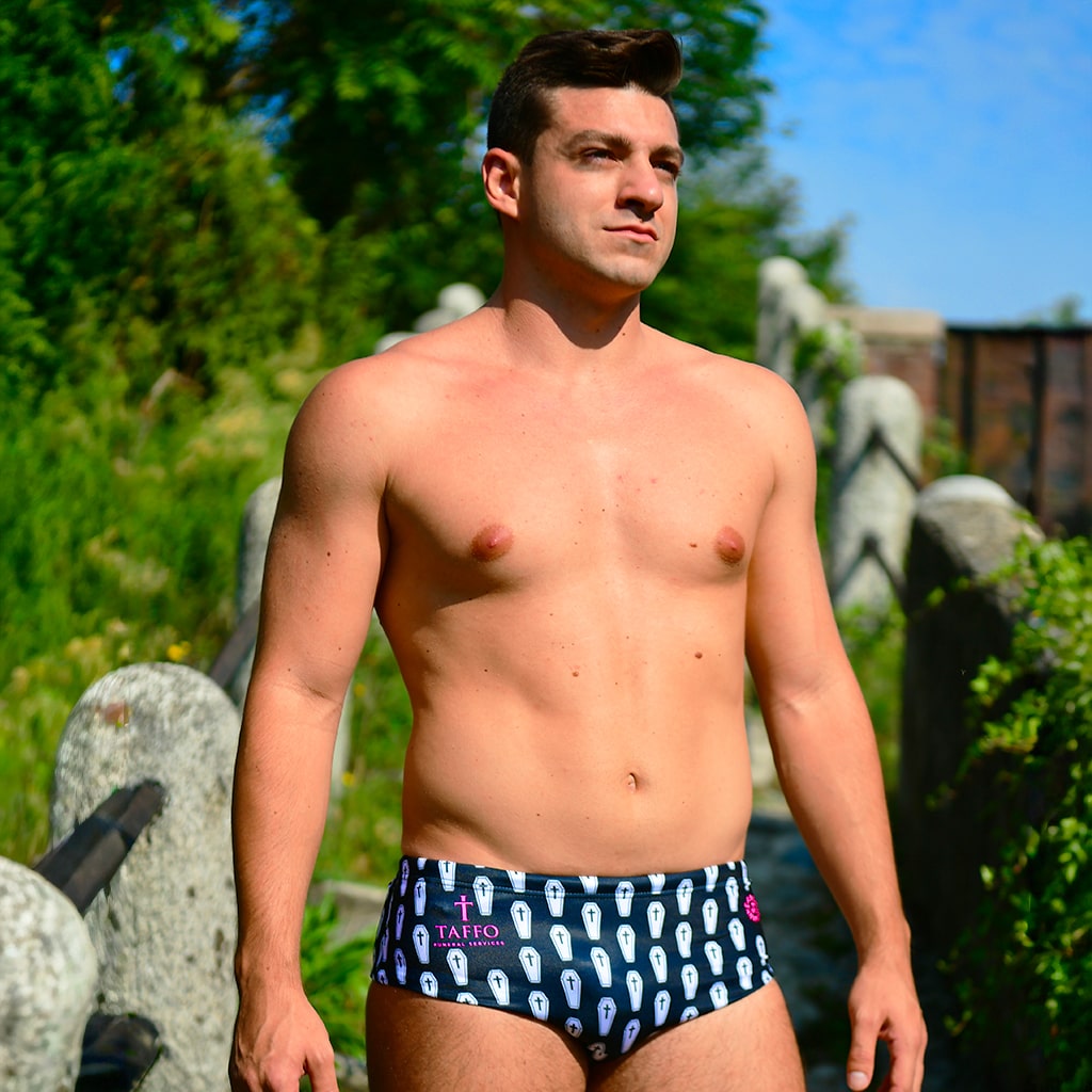 Maillot de bain mi-long pour homme, idéal pour les athlètes qui s’entraînent intensivement plusieurs fois par semaine (même tous les jours !). Une édition exclusive en collaboration avec Taffo Funeral Services.