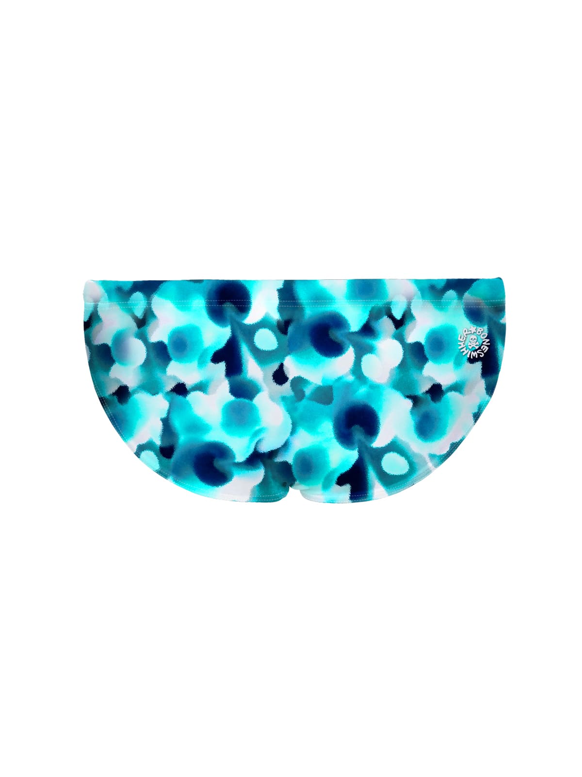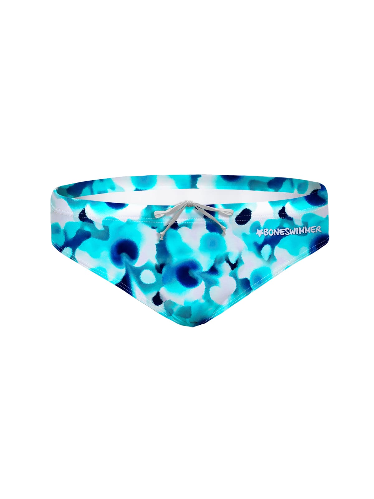 Slip de bain d'entraînement, modèle H2otto. Impression « Camouflage » : motif revisité dans une clé contemporaine, où le bleu clair est le protagoniste absolu.