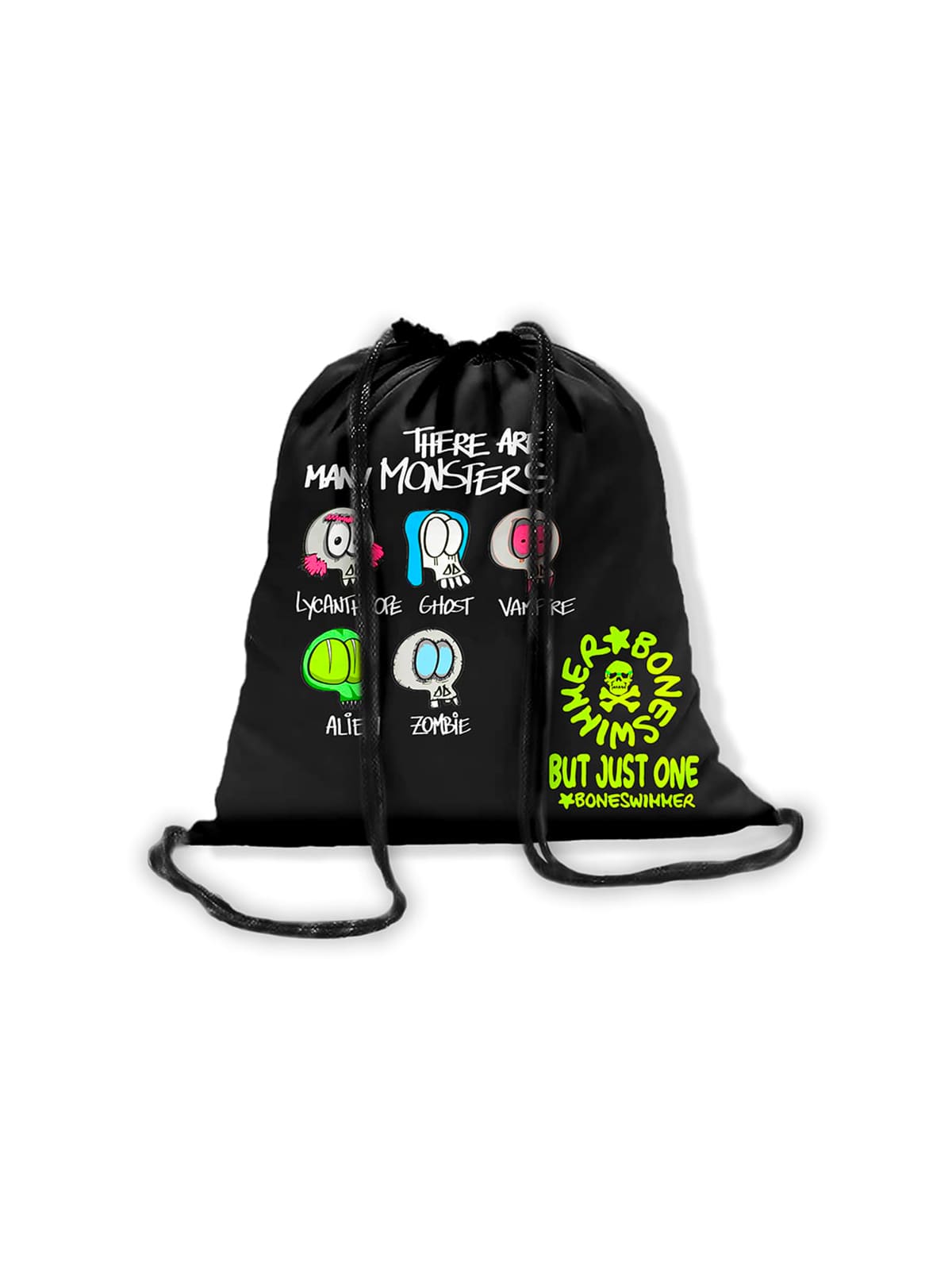 Sac à dos en microfibre BONESWIMMER, imprimé Monster. Parfait pour contenir tout l’essentiel au bord de la piscine, avec fermeture par cordon et bretelles réglables.